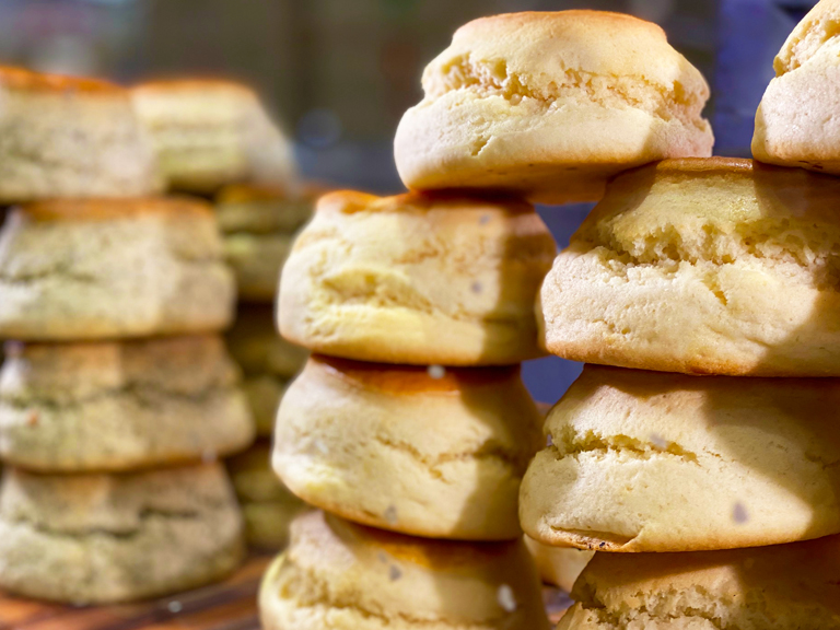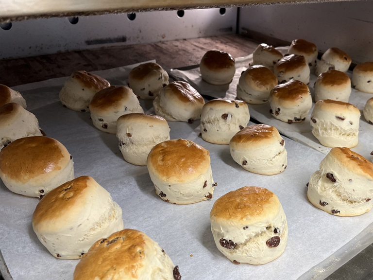 2種類のバター(グラスフェッドバター、バターミルク)と、卵をたっぷり使用した、ふっくらとしたコーニッシュスタイルスコーン。