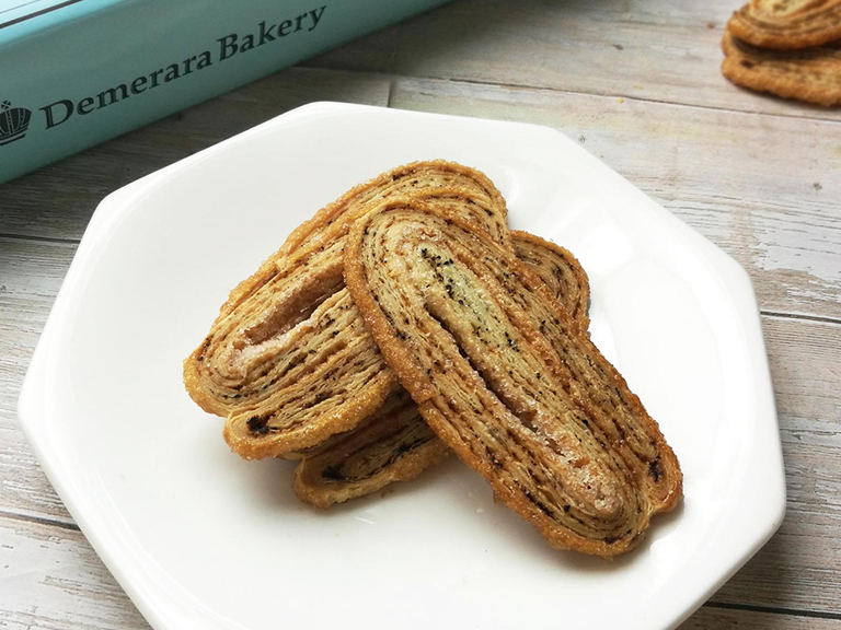 アールグレイ茶葉を練り込んだサクサクのパイ。駅・バスターミナルの利用客に好評